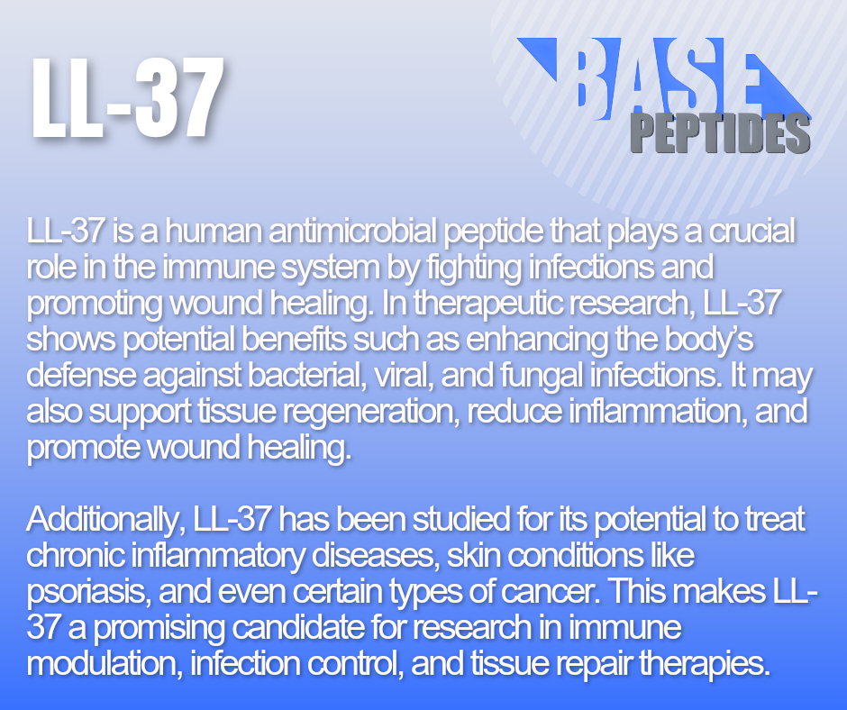 LL-37 was first isolated in the 1990s as the only human cathelicidin peptide. Discovered by researchers studying leukocyte responses to pathogens, LL-37 emerged as a central molecule in epithelial immunity. It is now studied in fields ranging from dermatology to immunology due to its ability to fight infection while modulating immune response and promoting tissue healing.