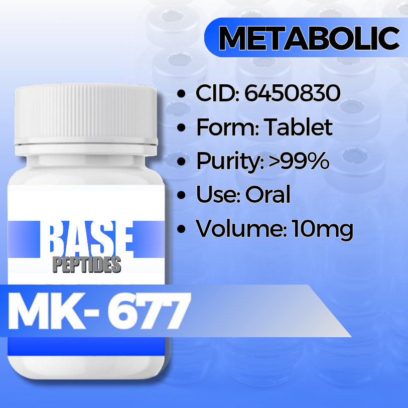 MK-677 (Ibutamoren) is an orally active, non-peptide growth hormone secretagogue that mimics the action of ghrelin by binding to the GHSR (growth hormone secretagogue receptor). It stimulates endogenous GH and IGF-1 release, leading to improvements in muscle mass, fat metabolism, sleep quality, and tissue regeneration. Unlike peptides, MK-677 is stable in tablet form and suitable for long-term GH-related studies.